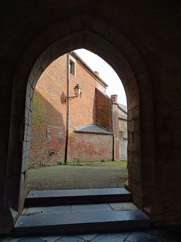 Enfin, continuez à gauche sur la rue de Beaumont, vers la Grand Place, en passant sous le porche de l’église.