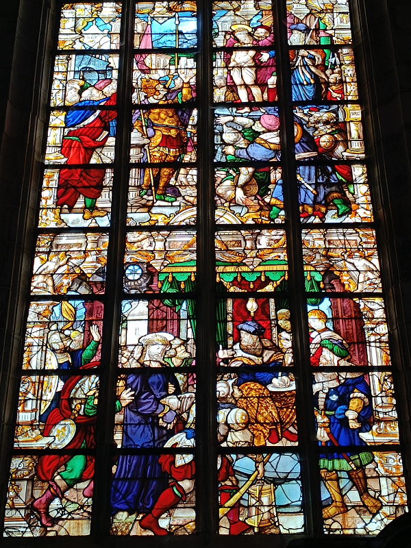 Les vitraux latéraux, exceptionnels, ont été réalisés par des maitres verriers de l’école de Courtrai : ils ont été créées en 1532. Leur dessin, de style Renaissance et d’influence flamande, est remarquable.