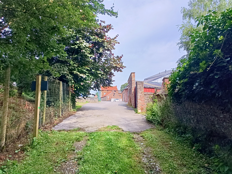 … et empruntez le 1er sentier enherbé, à droite (au milieu des buissons, signalé par le panneau).