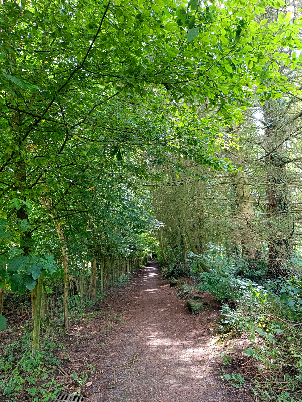 Passez devant un oratoire (perdu dans les feuilles, au milieu du chemin).