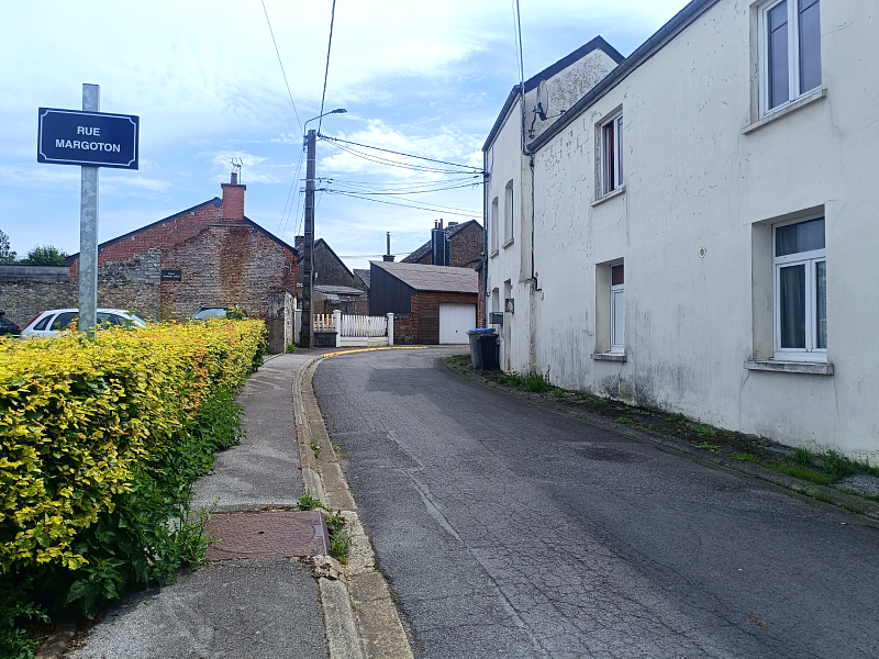 Au bout, tournez à droite et prenez la 2e à gauche, (la sinueuse) Rue Margoton. Avancez jusqu’au bout de la rue.