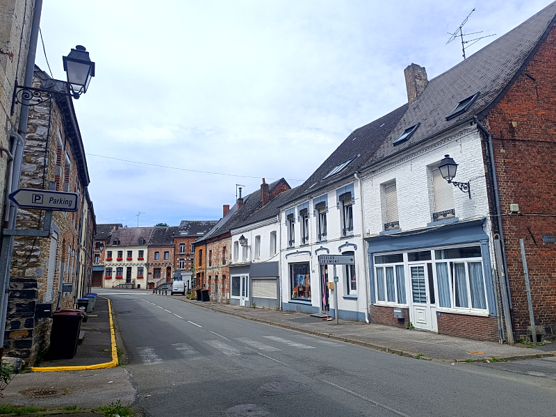 Au stop, tournez à droite, Rue de Trélon, (et tout de suite), à nouveau à droite, Rue de Liessies (suivez le panneau « Centre-ville »).