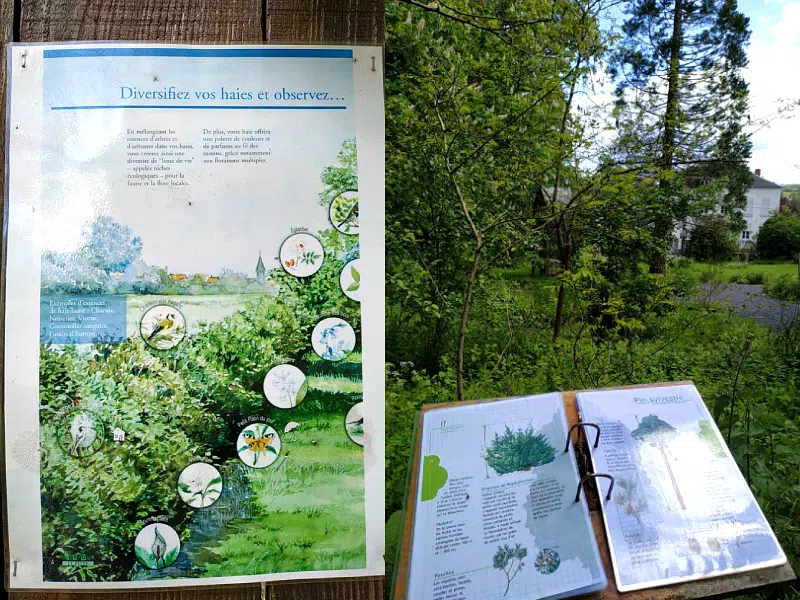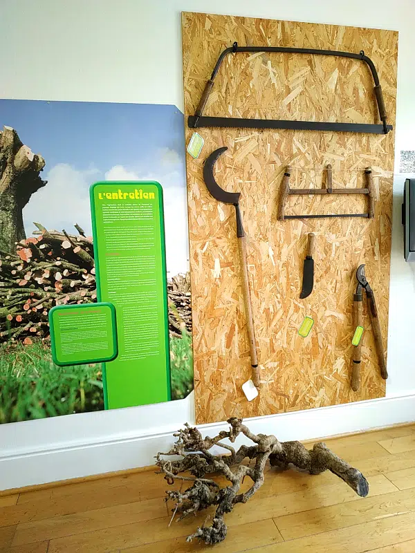 Dans cette espace, la maison du bocage explique à quel point les haies sont importantes… et qu’il ne faut pas trop les tailler ! La haie offre gîte et couvert à de nombreuses espèces animales : buse, chouette chevêche, chardonneret, mésange, rouge-gorge…. Plantée autour d’un verger, la haie héberge une faune utile à l’arboriculteur. Les insectes attirés par les fleurs de la haie assurent une meilleure pollinisation.