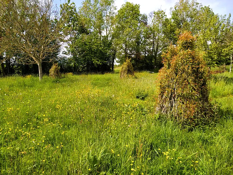 La prairie, en gestion naturelle, possède une flore et une faune très riches. Un parcours tondu créé comme un labyrinthe dans les hautes herbes.