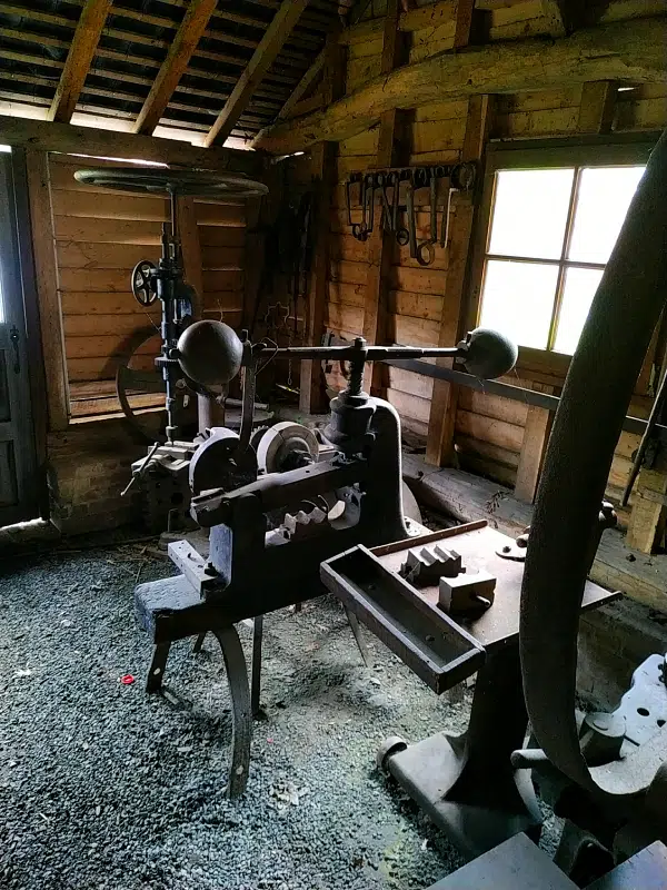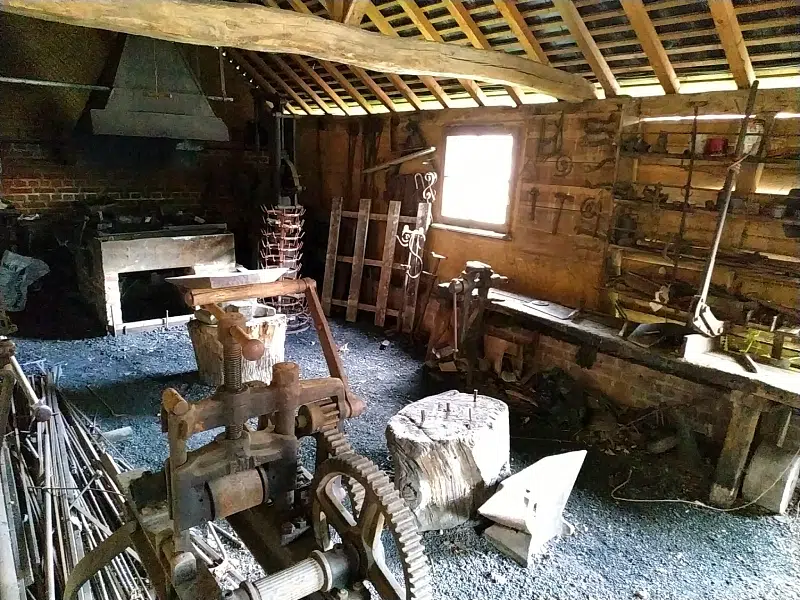 Dans la grangede brique, bois et torchis, vous pouvez découvrir des expositions sur les plantes sauvages locales (et, lorsque je m’y suis rendue, les plantes toxiques). Une forge évoque le travail du fer et son utilisation dans le milieu rural.