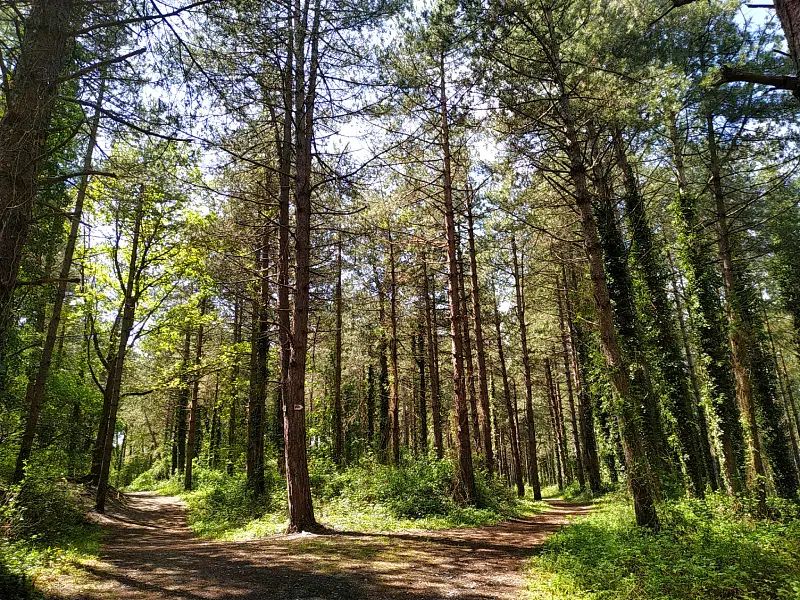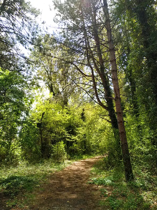 Lorsque l’on s’enfonce dans le bois, on est plongé dans un autre monde : le sol sablonneux, souvent couvert d’aiguilles de pin, s’enfonce sous nos pas, le chant des oiseaux nous accompagne et l’odeur enivrante des hauts conifères nous enveloppent. Tous nos sens sont en éveil.