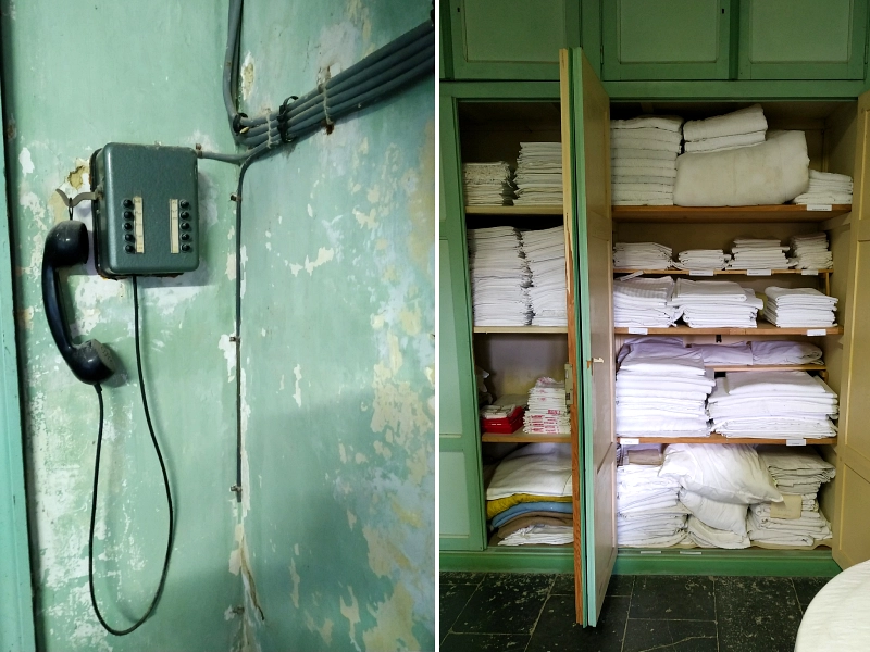 Dans l’ancienne cuisine devenue lingerie s’empilent des dizaines de draps immaculés, mais on remarque surtout le téléphone. Si vous êtes fan de la série britannique « Downton Abbey », vous connaissez les clochettes qui servaient à appeler les différents domestiques selon le besoin. La famille Merode était plus moderne, car elle fit rapidement installer un téléphone interne au château de Trélon.