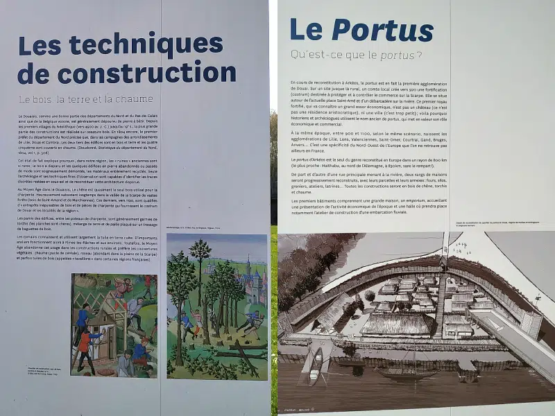 Si le musée nous présente plusieurs millénaires d’histoire, le parc archéologique est entièrement consacré au Moyen Âge et plus particulièrement à la période du haut Moyen Âge (6e au 11e siècle). Sur ce vaste espace en plein air ont été reconstitués des bâtiments anciens, sur la base des vestiges découverts par le service archéologique de Douaisis Agglo.