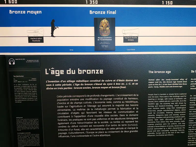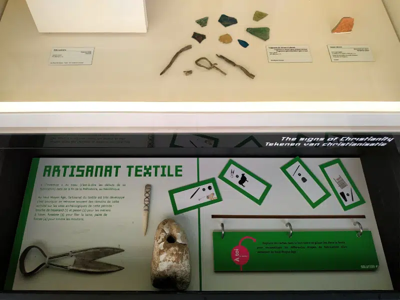 Grâce à ses presque 1500 objets (en céramique, os, verre, pierre…), le musée vous fait voyager dans le temps, de la préhistoire jusqu’au Moyen Âge, au fil d’un parcours chronologique qui vous présente la vie quotidienne de nos ancêtres, leur habitat, leurs activités, leur environnement, etc.,