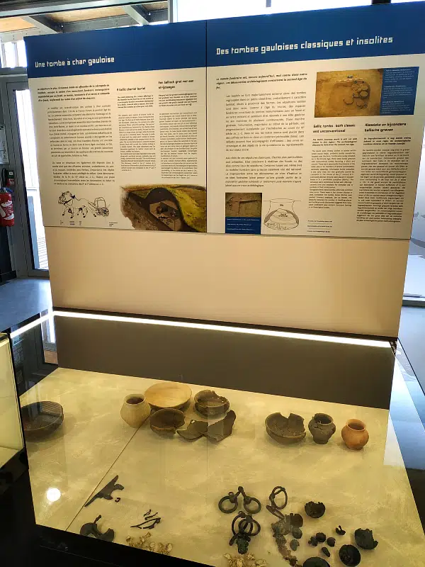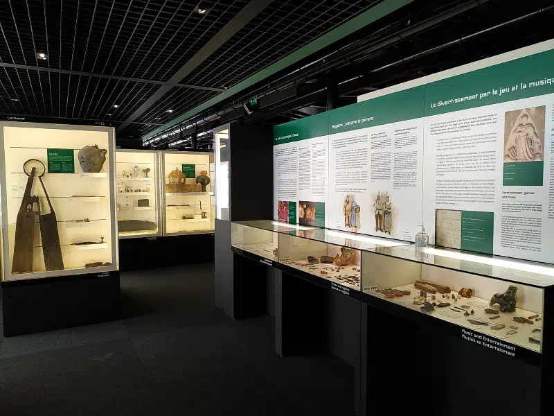 Les collections proviennent en partie du fonds ancien du musée de la Chartreuse de Douai (datant d’avant la Révolution française), mais elles ont été enrichies par les découvertes réalisées durant les fouilles menées de 1970 à 2002. Si les objets présentés sont tous millénaires, la présentation est moderne et colorée : films, maquettes, bornes multimédias tactiles… On découvre les collections de manière ludique et interactive.