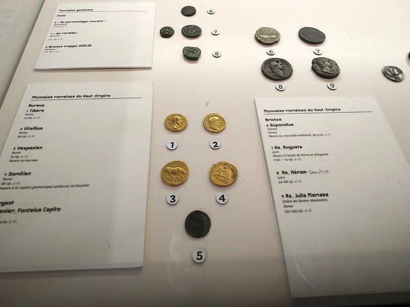 Le musée Arkéos rassemble aussi quelques documents des archives municipales et la plupart des monnaies qui étaient conservées à la bibliothèque municipale de Douai.