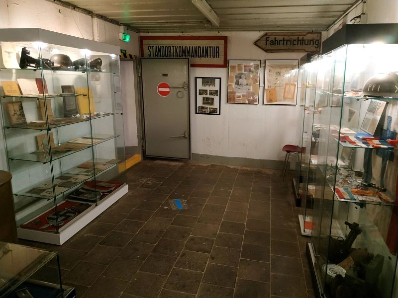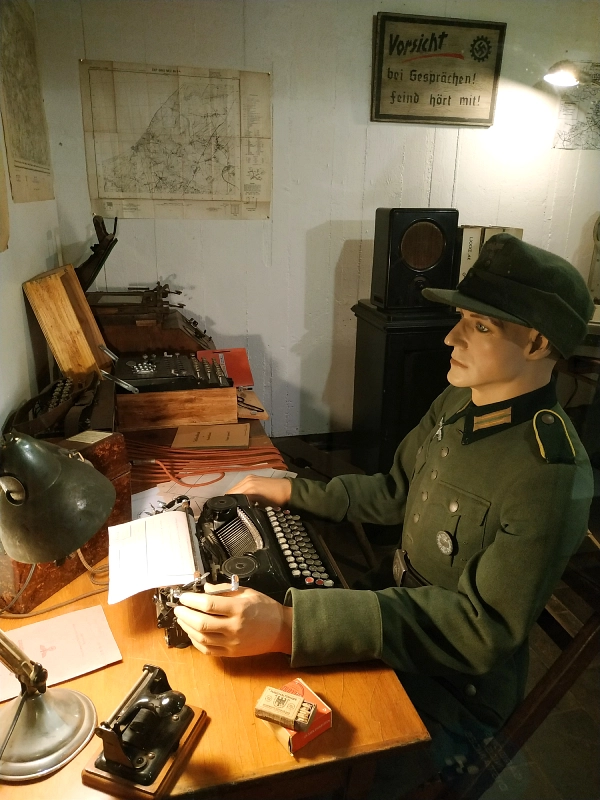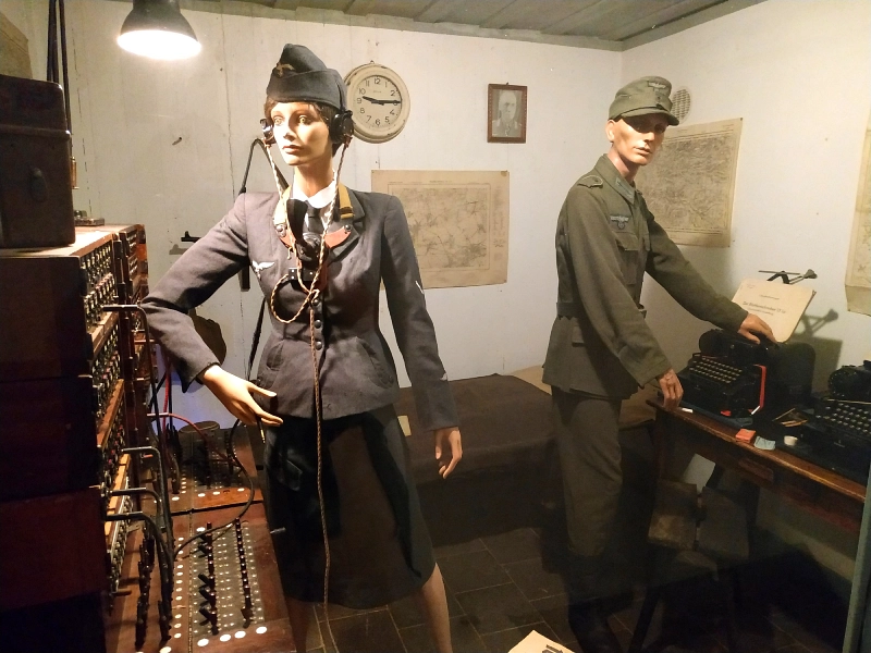 En pénétrant dans l’énorme bunker de béton armé aux murs de 2 mètres d’épaisseur, vous découvrez une quinzaine de salles reconstituées comme à l’époque : locaux techniques (ventilation et électricité), cuisine, sanitaires, bureau du général, centrale téléphonique, station d’écoute, etc.