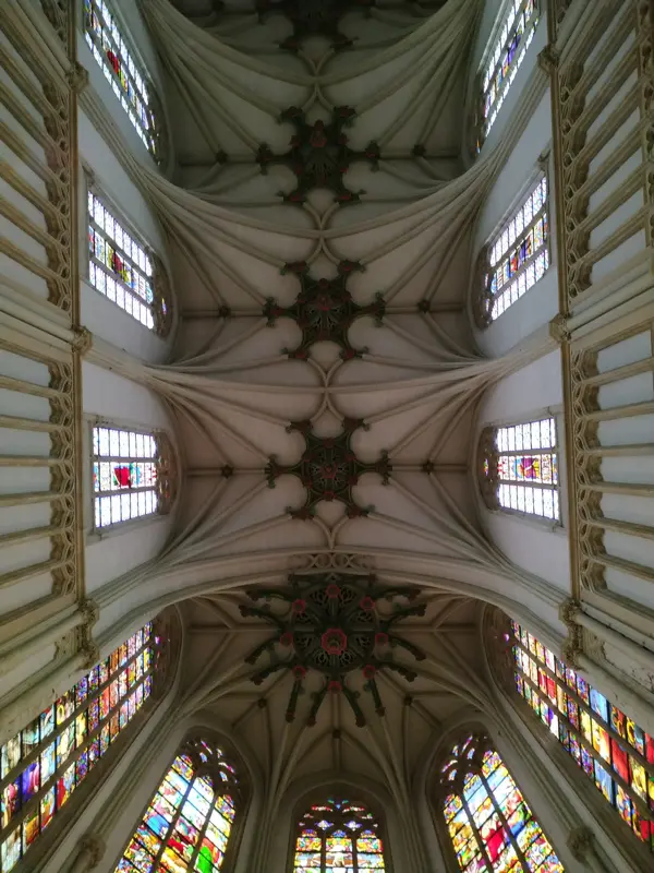 Les voutes sont ornées de magnifiques clés pendantes ouvragées, en plâtre peint de vert et de rouge, créées de toutes pièces au 19ᵉ siècle.