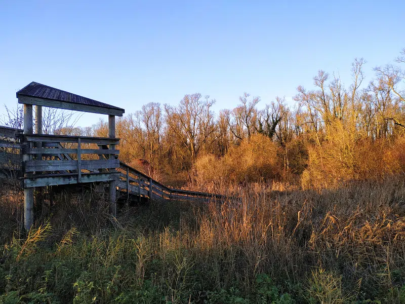 Des pontons, passerelles et tours d’observation permettent d’admirer les nombreux oiseaux et la végétation, qui évolue au fil des saisons.