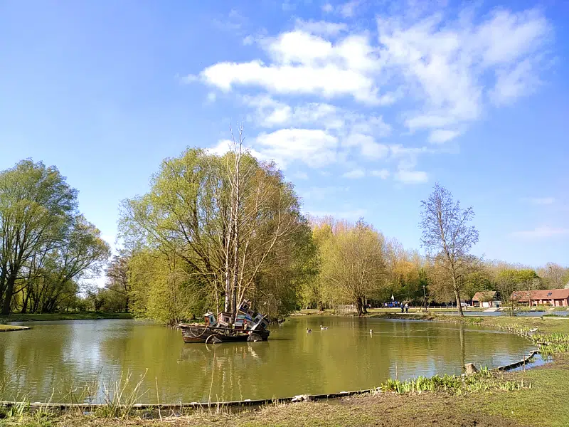 Des chemins sinuant partout dans le parc, on se retrouve parfois, sans le vouloir, sur le chemin de halage qui borde la Deule. On peut observer les péniches qui avancent paresseusement ou le fonctionnement d’une écluse.