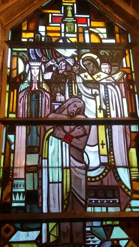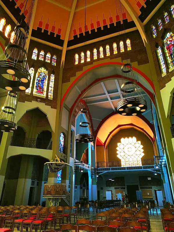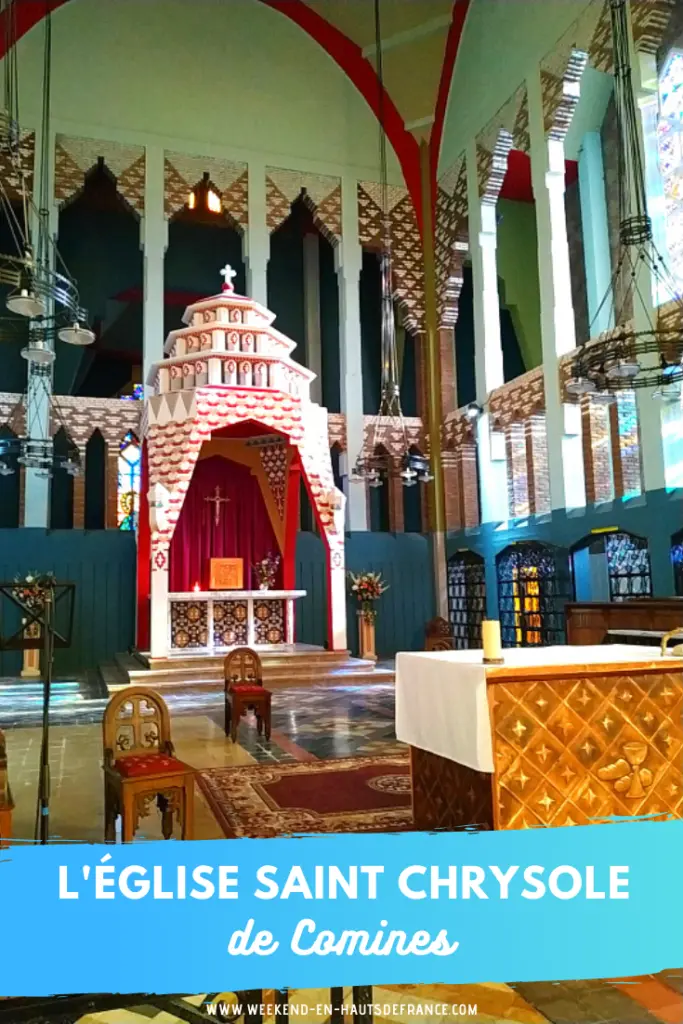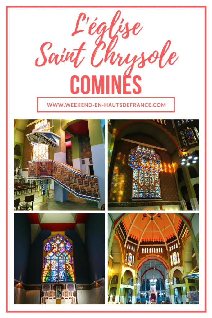 Quand on franchit le seuil de l’église Saint Chrysole, on en prend plein les yeux ! Grâce à sa restauration, l’église de Comines a retrouvé ses couleurs des années 1930. Choisies par Dom Bellot, ces teintes étonnantes rappellent les couleurs vives et chatoyantes de l’art byzantin, soulignées par les magnifiques vitraux.