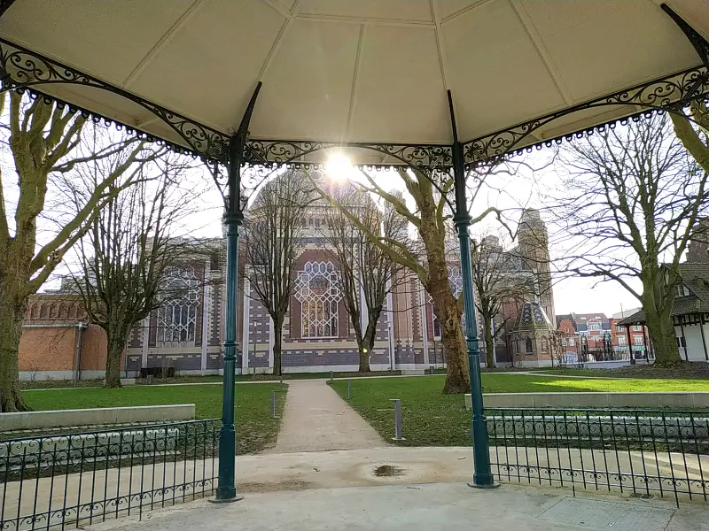 Située sur la Grand Place de Comines, l’église Saint-Chrysole se dresse face au beffroi et à la mairie. Dans une région où l’on trouve surtout des églises gothiques ou néo-flamandes, l’édifice surprend autant par sa forme inhabituelle que par ses couleurs et son style néo-byzantin. Croyez-moi, vous n’avez jamais vu une église comme celle-là !