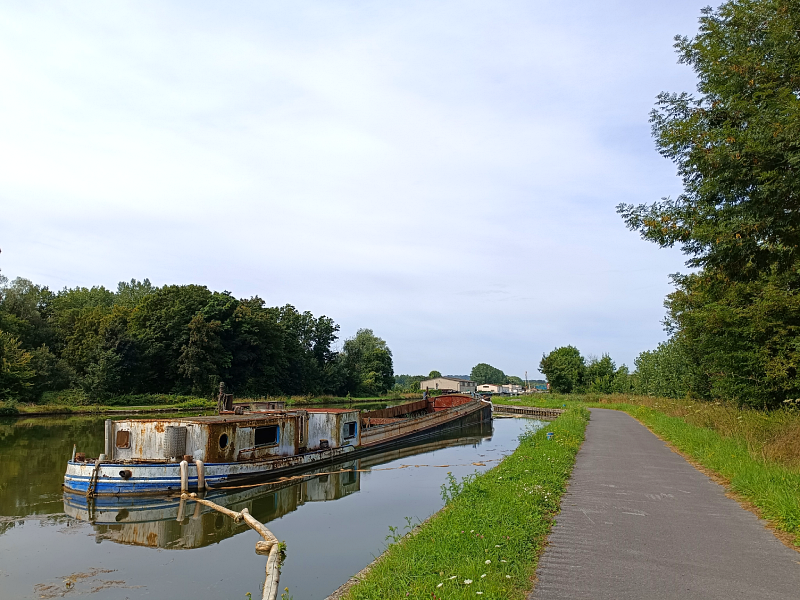 Cette péniche coulée et laissée en place m’a surprise. Mais vous pouvez y observer des batraciens, des plantes aquatiques et des oiseaux qui s’y promènent.