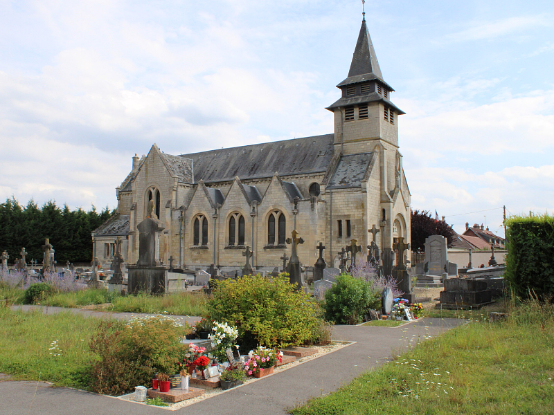 Le monument aux morts qui se dresse devant l’église ne représente pas, comme c’est souvent le cas, un soldat victorieux. Il figure une femme, allégorie de la France, qui pleure à l’ombre d’un rosier, devant un champ de croix, un casque à ses pieds. Il a été créé par la maison Rombaux-Rolland de Jeumont (Nord) et inauguré en 1925.