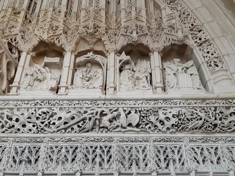 La construction s’est déroulée en deux étapes : la première portant sur la chapelle basse au 14e siècle, rehaussée au début du 15e siècle par une décoration flamboyante ; la seconde entre 1506 et 1514 pour le narthex, la salle du trésor et la chapelle haute.