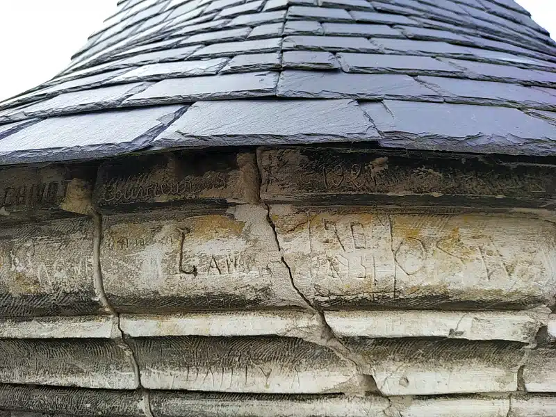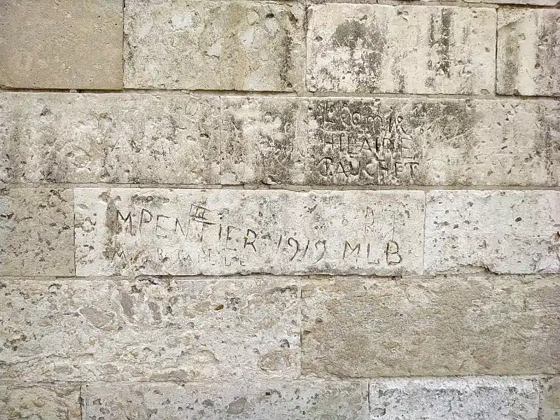 Au 19e siècle, on créa un campanile, un clocheton et quatre tourelles qui modifièrent totalement le style du beffroi. Une fois sur le chemin de ronde, on réalise que la pierre tendre de ces éléments a été gravée de noms par les gardes et les visiteurs, dès le 19e siècle.