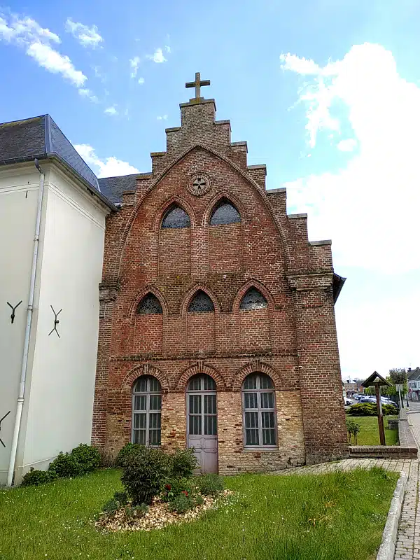 La chapelle jouxte l’Hospice, conçu au 18e siècle en pierres blanches et briques.