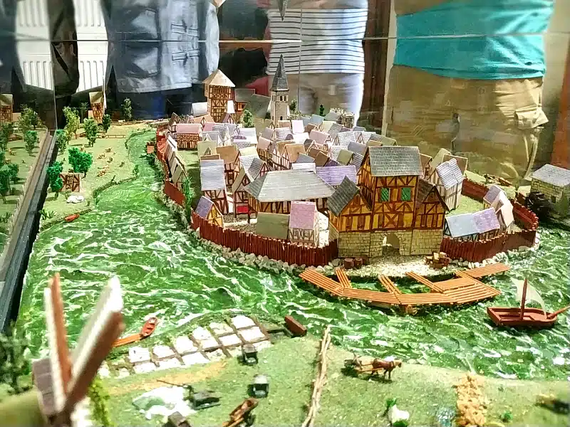 Le long du parcours, onze panneaux d’information vous immergent au Moyen-Age et vous permettent d’imaginer la cité telle qu’elle existait, avec ses bastions, ses remparts, ses portes, sa place du commerce, ses congrégations, etc.
