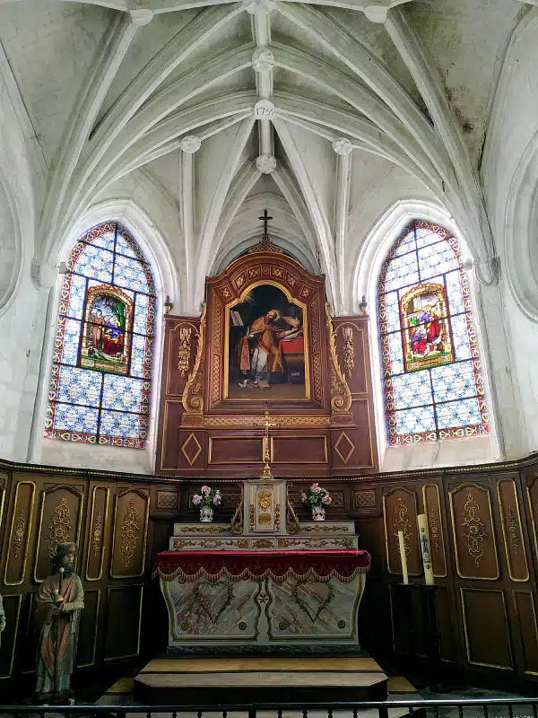 Le chœur ne fut voûté qu’en 1755, date figurant sur une des clefs de voûte. L’autel, les boiseries et les stalles datent du début du 18e siècle.